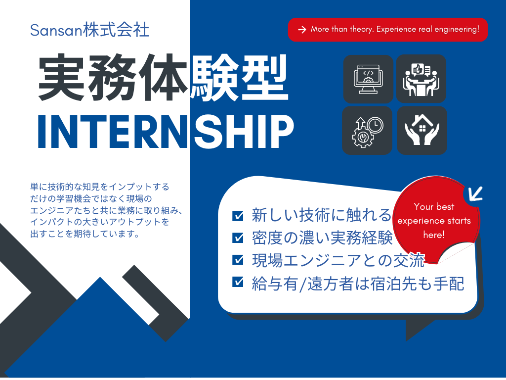 約1か月間程度、社員と同じように実務経験を通してスキルアップを目指す就業型インターンシップです。